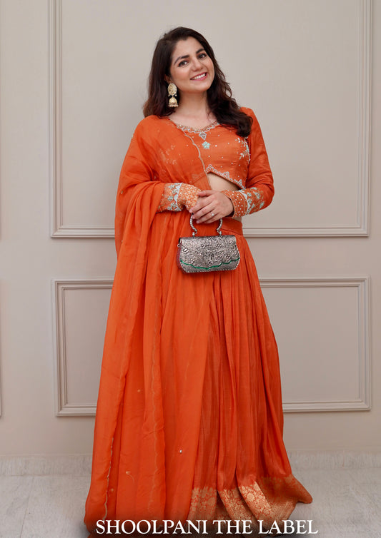 Exquisite Rust Orange Lehenga Set: Crafted for Elegance and Grace