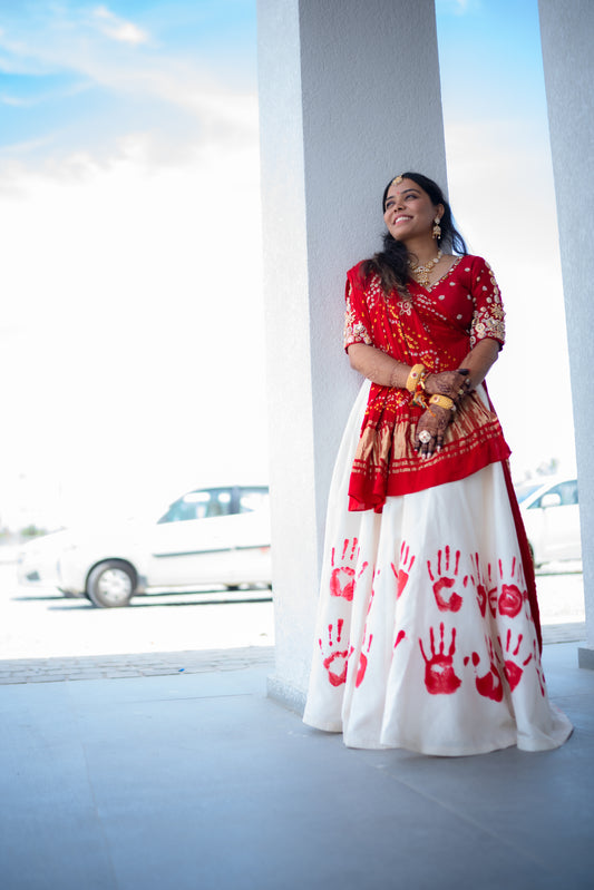 Hand imprint Lehenga with Jadau Jewelry Blouse