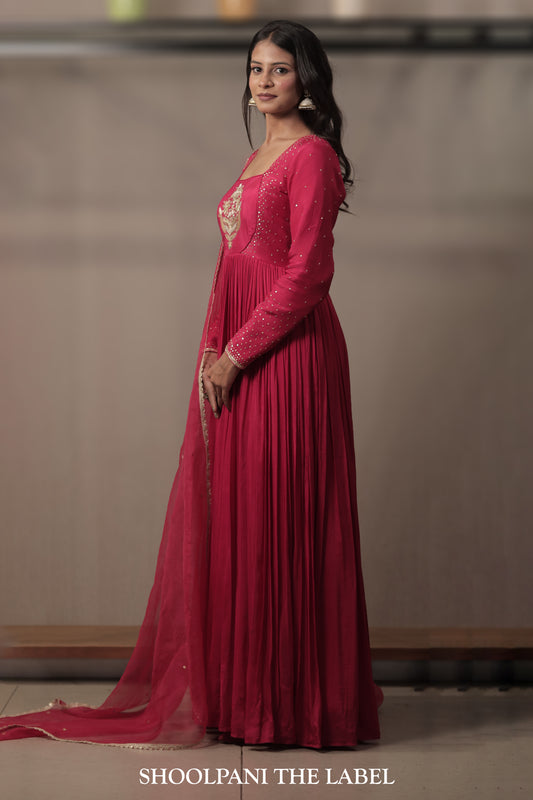 Wine Hand-embroidered Corset Gown At Shoolpani The Label